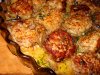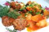 В фарш добавить яйца, выдавленный через пресс чеснок, посолить, поперчить, добавить немного воды и хорошо вымешать. Сделать маленькие фрикадельки, не больше грецкого ореха, обвалять их в муке и обжарить в масле со всех сторон до светло – коричневого цвета. Залить фрикадельки соусом, поперчить, положить оливки, если нужно – то посолить и долить немного воды. Фрикадельки должны полностью покрыться соусом. Тушить на медленном огне под закрытой крышкой минут 30.