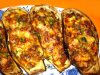 Картофель вымыть и отварить в кожуре. Дать немного остыть, очистить. Разрезать вдоль и ложкой вынуть мякоть из серединки, чтобы получились лодочки. Лук и грибы мелко порезать, обжарить лук в масле, добавить к нему грибы. Тушить пока не выпарится жидкость, потом положить нарезанную кусочками картофельную мякоть, посолить, поперчить, посыпать приправами. Половинки картофеля заполнить фаршем, сверху обмазать майонезом.