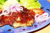 Телячья печень; лук репчатый; яблоки кислые, зеленого цвета; специи различные и соль; паприка и растительное масло.