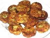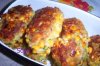 Рис отварить в подсоленной воде до готовности, остудить, смешать с зеленым горошком или кукурузой. Натереть на крупной терке кабачки, слегка отжать, посолить, поперчить, добавить яйца, мелко резаную зелень и чеснок, приправы и смешать с рисом и горошком. Вымешать массу, попробовать на соль, приправы, если нужно – подправить вкус. Может быть такое, что масса оказалась жидковатой. В этом случае добавить немного панировочных сухарей – они впитают жидкость.