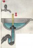 Сифон — изогнутая трубка, через которую, после опускания ее одним концом в сосуд с жидкостью и удаления патрубки воздуха, жидкость изливается с другого конца.Действие сифона прекращается, если в трубку проникнет воздух или давление веса столба жидкости в трубке от вершины изгиба до уровня жидкости в сосуде станет меньше давления воздуха на поверхность жидкости в сосуде.