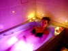 Фиолетовому цвету свойственно вдохновлять и снимать напряжение. Является самым «высоким цветом», поскольку оказывает влияние на деятельность шишковидной железы, которая расположена в промежуточном мозге. Его применение показано даже в случаях сотрясения мозга. Ему присуще обострять чувства и подавлять аппетит.