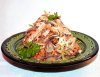 Можно сделать салат порционным. Для этого есть интересный вариант оформления. У пластиковой бутылки отрезать горлышко и донышко, оставить небольшой цилиндр, длиной примерно 15 см. Его поставить на плоскую тарелку и выкладывать слоями салат. Когда порция салата будет выложена, пластик снять. Получится очень красивый, яркий слоеный салат.