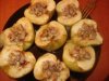 2.Из яблок осторожно вынуть сердцевину, стараясь не нарушить целостность плодов. Начинить их изюмом и положить в форму смазанную жиром.