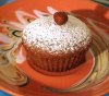 Формочки смазать маслом, заполнить тестом на половину объема, не больше, кексы прилично поднимаются в духовке. Выпекать при температуре 200 градусов в течение 20 минут. Готовые кексы должны быть темно – золотистого цвета. Немного остудить, достать из формочек и посыпать сахарной пудрой.