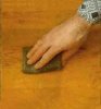 Иногда на деревянной мебели остаются пятна от ожогов. Смотрятся такие обугленные пятна очень некрасиво, и их нужно поскорее удалить. Как это сделать?1.Для начала надо зачистить обожженный участок поверхности наждачной бумагой. Для этого прикрепите кусочек наждачной бумаги к кончику стержня диаметром около трех миллиметров.