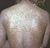 Течение болезни сопровождается появлением пузырей, которые вскоре вскрываются и оставляют после себя трещинки и корки желтого цвета. Продолжительность заболевания составляет порядка несколько недель. В случаях ослабленности организма при авитаминозе длительность заболевания может составлять нескольких месяцев, особенно это характерно в случаях дефицита витамина В2.
