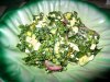 2. Черемшу вымыть, обсушить и нарезать. Сделать пюре с помощью блендера, смешать с 80 мл оливкового масла и рубленными грецкими орехами. Подмешать тертый сыр.