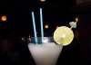 Теперь в широкий бокал (для Мартини) кладём нашу подготовленную кожуру от грейпфрута, в него выливаем наш коктейль и сюда же добавляем пару кубиков льда.