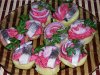 Картофель очистить, с одной стороны срезать выпуклости, чтобы лодочки не переворачивались на противне. Разрезать пополам не нужно. В каждой картофелине вырезается серединка, делается углубление, которое будет заполнено фаршем.