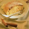 Начинаем формировать штрудель, для этого начинку выкладываем на пласт теста. Начинка должна занимать примерно треть площади пласта теста. Затем сверху начинку присыпать корицей и завернуть плотно в рулет. Переложить рулет на противень и выпекать примерно тридцать минут, температура должна быть — 200 градусов.