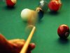 Как выполнить бильярдный трюк "Шар с борта, с тыла в лузу"?
