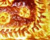 Слоеное тесто раскатать и выложить его в форму и обязательно сделать бортики из теста.