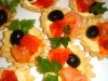 В готовые корзиночки положить остывшую начинку и запечь на небольшом огне примерно десять минут. Подавать можно горячими или холодными.