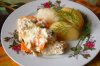 Примерно через десять минут достать рыбу, омлетная масса за это время должна «схватиться» и загустеть. Выложить поверх рыбы и омлета кружочки помидоров, поперчить и посолить, засыпать тертым сыром. Поставить в духовку и запекать еще 20 минут, пока сверху не образуется золотистая корочка. Такая рыба может подаваться как в горячем, так и в холодном виде. Для усиления вкуса можно добавить специи для рыбы.