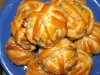 Гранат очистить, сыр нарезать тонкими ломтиками. Куриное мясо натереть солью и специями. В «карман» положить ломтик сыра, между сыром и кожей насыпать зерна граната. Тесто раскатать в тонкий прямоугольный пласт, нарезать длинными полосками. Закрепить начало полоски на косточке и аккуратно обмотать голень, стараясь не оставлять просветов и не допуская выпадения гранатовых зерен. Выложить в один ряд на смазанный растительным маслом противень, обмазать взбитым яйцом, посыпать травами, специями.