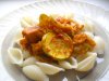 Нарежьте дольками помидоры. Распарьте их вместе с мелко нарезанным луком под крышкой в эмалированной посуде.