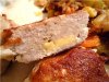 В другой сковородке растопить сливочное масло, обжарить кусочки яблока две минуты, влить сок и тушить яблоки пока жидкость не уменьшится в два раза. Влить сливки и тушить еще три минуты. Выложить мясо вместе с выделившимся во время жарки соком, прогреть одну – две минуты, добавить зелень или специи и снять с огня. По желанию к соусу можно добавить щепотку куркумы, она придаст блюду легкую остроту и красивый ярко – желтый цвет.