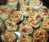 После этого нужно раскатать тесто в тонкий пласт. Поверх теста разложить начинку. После этого тесто свернуть в трубочку. Разрезать рулет на кусочки и выложить на противень. Отдельно приготовить заливку, затем залить все розочки. Поставить форму с розочками в уже хорошо прогретую духовку (200 граммов) на тридцать пять минут. После этого розочки нужно просыпать тертым сыром и запечь еще пятнадцать минут.