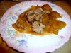 После того, как мясо будет вымыто, его нужно хорошо обсушить бумажным полотенцем, нарезать тонкими полосками и посыпать столовой ложкой крахмала. Крахмал хорошо втирается в мясо и должен покрыть кусочки со всех сторон.