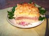 Смешать оба вида фарша, добавить яйца, остывшие овощи (лук и капусту), хорошо вымешать. В конце вымешивания посолить и поперчить, добавить мускатный орех. Форму смазать маслом, выложить подготовленный фарш, разровнять поверхность. Взять 300 мл. отвара в котором варилась капуста, смешать с двумя столовыми ложками майонеза и этой смесью залить запеканку. Поставить в разогретую духовку, запекать на среднем огне около часа.