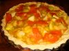 Отделить желтки от белков. Белки поставить в холодильник. Желтки растереть со стаканом сахара добела, добавить мягкий маргарин, соль, разрыхлитель. Размешать и всыпать просеянную муку. Замесить мягкое, пластичное тесто. Разделить его на две части – одна должна быть примерно в два раза больше другой. Меньшую часть убрать в холодильник, из большей раскатать пласт по размеру формы с учетом бортиков. Переложить в форму.