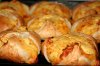Яйцо взбить венчиком и разделить на две части. Натереть сыр на мелкой терке. Оставить немного сыра для присыпки, остальное смешать с половиной яйца и молотым красным перцем. Если тесто состоит из нескольких пластов, их нужно разделить. Стол посыпать мукой, выложить пласт теста, слегка раскатать. Так же и с остальными пластами, они должны быть одинакового размера. На тесто положить половину начинки из сыра, накрыть вторым пластом, слегка раскатать, посыпать тертым сыром и разрезать вдоль на четыре части. Каждую полоску скрутить спиралькой и выложить на противень. Спиральки смазать яйцом, посыпать сыром и перцем. Выпекать до золотистого цвета.