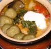 После этого казан можно поставить на огонь. Сначала сделать полную мощность, как только будет слышно характерное шипение, то нужно в казан налить немного воды или бульона, прикрыть крышкой и сделать очень слабый огонь. Нужно тушить это блюдо до полной готовности картофеля и пельменей.