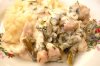 На дно глубокой сковородки выложить весь лук, на него – кружочки моркови, затем картофель и слой замороженной (или свежей) стручковой фасоли. Если фасоль свежая, то отрезать носики и хвостики и нарезать фасоль небольшими кусочками. На фасоль положить цветную капусту. Все посолить, поперчить. На овощи выложить рыбу, налить немного воды, чтобы только прикрыла овощи и тушить на небольшом огне под крышкой сорок минут. В конце приготовления посыпать зеленью, мелко нарезанным зеленым луком.