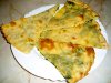 Начинку для лепешки придумывайте по своему вкусу или можно испечь лепешку без начинки. Если готовите с начинкой, то на охлажденное тесто выкладываются кружочки помидор, слегка подсаливаются, посыпаются перцем, паприкой. Добавляются ветчина или маслины и лепешка ставится в духовку на средний огонь. Через пятнадцать минут достается, сверху насыпается слой сыра и снова в духовку на пять минут. Готовая лепешка посыпается зеленью. Если без начинки, то выпекается до готовности (15 минут), затем посыпается сыром и держится в духовке еще несколько минут пока сыр не расплавится. Такая лепешка может быть и основой для пиццы при условии что предпочтение отдается пицце где корж высокий, рассыпчатый и теста много.