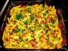 На сайте много макаронных запеканок, но эта отличается от всех, что мне встречались. Макароны не нужно отваривать, все продукты перемешиваются, заливаются молочным соусом и запекаются в духовке. Вот такой нехлопотный рецепт. Что понадобится из продуктов