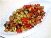 Баклажаны очищать от кожицы не нужно. Нарезать их кубиками, сложить в дуршлаг, посыпать солью. Оставить минут на двадцать. Тем временем помидоры обдать кипятком, снять кожицу, мякоть натереть на терке. Мелко нарезать лук, чеснок, петрушку, перец нарезать полосочками.
