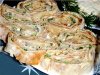 Колбасу нарезать длинными полосочками, тонкой соломкой нарезать маринованные огурчики. Яйцо слегка взбить и подсолить. Край лаваша намазать сыром, на него разложить колбасу, на колбасу и около нее – огурцы. Смазать кетчупом. Примерно треть яйца вылить на лаваш рядом с огурцами и колбасой, посыпать все мелко нарезанной зеленью (зимой можно брать замороженную или сушеную зелень). Свернуть рулетом, выложить на застеленный пергаментом противень, смазать сверху взбитым яйцом. Поставить в разогретую духовку, запекать на среднем огне семь – десять минут. Как только лаваш подрумянился – доставайте, горячая закуска готова.