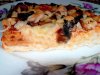 Тесто для пиццы готовится без дрожжей, на соде. Корж получится тонкий, но не хрустящий, а мягкий, как и вся выпечка на кефире. Начинка для пиццы – на ваше усмотрение, единственное что рекомендуется не использовать много майонеза или кетчупа – тесто может не пропечься.Необходимые продукты
