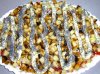 Собираем салат. Первый слой – рис, его промазываем майонезом. Потом – колбаса - майонез, помидоры – майонез, плавленый сырок, рис – майонез, колбаса – майонез, помидоры – майонез, плавленый сыр, рис – майонез. Верх украшаем мелко нарезанным белком и тертым желтком. Посыпаем укропом и даем пропитаться. Слои можно укладывать в любой последовательности.