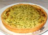 Муку просеять и смешать с разрыхлителем и солью. Нарезать кусочками охлажденный маргарин, перетереть с мукой в крошку. Влить воду, быстро замесить тесто. Скатать его в шар, отделить треть и убрать этот кусочек в холодильник. Из оставшегося теста раскатать круг, переложить в форму, распределить по донышку и бортикам. Поставить форму с тестом в холодильник и начинать готовить начинку.