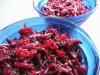 Очень вкусная маринованная свекла получается, всем любителям свеклы рекомендую попробовать приготовить свеклу по этому рецепту. Готовится всё очень просто, отвариваем заранее до готовности около пол килограмма свеклы. После этого очищаем её и затем аккуратно соломкой тонкой нарезаем. Соломка по длине должна быть такая, чтобы свободно могла в горлышко банки пройти. То есть сильно длинную соломку на нарезайте. Если есть уже испечённая в духовке свекла - можно её использовать.