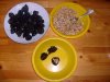 Между коржами кладем нарезанный небольшими кусочками чернослив и ядра грецких орехов.