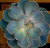 Эхеверия однобокая сизая (Echeveria secunda glauca hort.) семейство толстянковые. Родом из Америки. Является суккулентным растение. Листья бледно – зеленовато – голубоватые, мясистые, собраны в плотносомкнутую розетку строгой формы.У листьев овальная, заостренная, сужающаяся к основанию форма. Цветочные стебли мясистые, с редкими листочками. Цветки собраны в односторонние кисти, красно – оранжевого цвета.