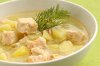 Аккуратно залейте кубики из лосося горячим соусом и потушите 10 минут.