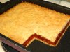 Пока готовится начинка, делаем тесто. Мягкий маргарин растираем с желтками и сахаром. Добавляем сметану, гашеную соду и два стакана просеянной муки. Замешиваем мягкое тесто. Выкладываем его на смазанный маслом противень и разравниваем руками. Ставим в горячую духовку на средний огонь.