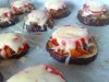 Мелко режем лук, натираем на терке морковку. Обжариваем в масле – можно по отдельности, можно вместе. Выкладываем на баклажаны, смазываем майонезом, посыпаем мелко нарезанной зеленью. Следующий слой из кружочков свежих помидор – их посолить, поперчить, смазать майонезом. Верх украсить ломтиками болгарского перца и свежей зеленью.
