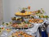 Стол накрой яркой скатертью или несколькими салфетками, на которые поставь фрукты, канапе, бутерброды, орехи.