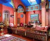 Этот стиль характерен простотой отделки и в то же время изысканностью мебели и дорогого текстиля. Светильники и лампы украшаются разноцветными камнями, мебель как правило украшается резными элементами (подлокотники дивана, изголовье кровати и т. д.).