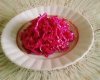 В 1 литре теплой кипяченой воды растворяют сахар, добавляют туда красный горький перец, подсолнечное масло, уксус и соль. Затем шинкуют капусту, чеснок мелко нарезают, а морковь натирают на крупной терке. Далее подготовленную капусту и морковь укладывают послойно, чередуя слои между собой (не забывая добавлять чеснок). Заливают капусту подготовленной смесью, сверху придавливают грузом. Посуду с капустой и грузом отправляют в прохладное место.