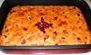Форму смазать маслом, вылить половину теста. Выложить слой ягод или фруктов (если яблоки – то снять кожицу, мякоть нарезать кубиками) и залить оставшимся тестом. Поставить в горячую духовку, выпекать полчаса при температуре 180 градусов. Готовый кекс остудить и полить шоколадной глазурью (это не обязательно, кекс вкусный и без дополнений).