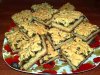 Готовое тесто выкладываем в форму (смазывать ее не нужно), ладошкой разравниваем тесто по донышку и делаем небольшие бортики. Выкладываем начинку, сверху натираем замороженное тесто. Ставим в горячую духовку, выпекаем на среднем огне пока верх не подрумянится. Печенье нужно нарезать еще горячим, почти сразу как только достаем из духовки.