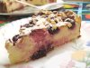 Для начинки взбить сметану с сахаром, добавить яйца, ванильный сахар и еще раз тщательно взбить. Всыпать крахмал, осторожно перемешать и выложить начинку на пирог. Снова поставить его в духовку, выпекать еще двадцать минут. Остудить и нарезать на кусочки.