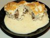 Можно приготовить сразу с гарниром. Картошку нарезать кружочками, отварить в подсоленной воде до полуготовности. Выложить на дно формы, на нее – куриные грудки, потом капусту, сыр и залить соусом. Время запекания такое же.