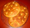 Готовое тесто разделить на две части, сформировать две лепешки, выложить их на бумагу для выпечки, накрыть и дать еще раз подняться. Включить духовку, нагреть ее вместе с противнем до 220 градусов. Достать горячий противень и переложить на него вместе с бумагой лепешки, сделать пальцами углубления, смазать лепешки растительным маслом (его развести водой – две столовых ложки масла смешать со столовой ложкой воды) и посыпать специями или солью. Поставить в духовку, выпекать первые десять минут при температуре 220 градусов, затем температуру снизить до 200 градусов и выпекать до золотистого цвета.